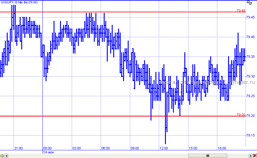 Пара доллар/иена демонстрировала самую сдержанную динамику. В течение всех торговых суток в четверг пара удерживалась в пределах узкого диапазона, ограниченного уровнями 79,20 – 79,46. В ходе торгов пара предпринимала попытку закрепиться ниже уровня 79,20, но дальше попыток дело не шло: цены достигли внутридневного минимума на 79,13 и вернулись в установившийся диапазон.
