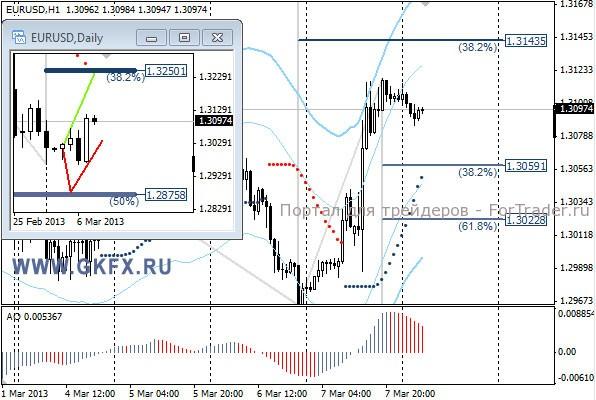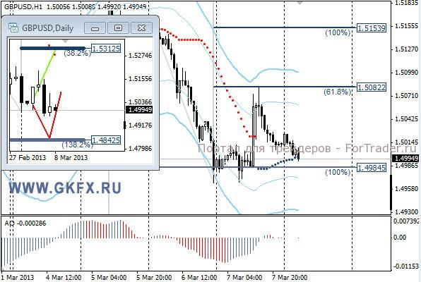Пара EURUSD неожиданно выросла еще до окончания заседания ЕЦБ после успешно проведенного аукциона по размещению испанских облигаций. Затем рост евро продолжился после заявлений Драги, которые указали на жесткую позицию против смягчения политики ЕЦБ. Это разочаровало тех, кто ожидал намеков на мягкую политику. Сегодня не менее волатильный день, потому что ожидается публикация данных по рынку труда в США, на которые рынок реагирует очень сильно. Месяц назад евро отметил максимум на уровне 1,3700 на этих данных. На этой неделе рассматриваю традиционно два варианта возможного движения цены, основной красный и альтернативный зеленый, склоняюсь к красному. Значимые уровни на сегодня отмечены на часовом графике. Индикатор АО в положительной зоне и снижается, указывая на коррекцию перед возможным дальнейшим ростом. Индикатор тренда указывает на рост. Пробуем купить низким объемом, так как под такие новости как сегодня, риск высок. Buy 1.3065 со стопом 1,3035. Цель 1,3140.