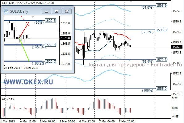 Цены на золото на этой неделе выбрали стратегию торговли в диапазоне и после сегодняшних данных по США, они могут, наконец, выйти из этого диапазона. Риск высок, но можно попробовать купить, так как потенциал к росту есть. На дневном графике традиционно делаю два варианта движения цены на неделю, основной красный и альтернативный зеленый, склоняюсь к красному. Значимые уровни на сегодня отмечены на часовом графике. Индикатор АО в отрицательной зоне и снижается, указывая на желание инструмента снижаться. Индикатор тренда указывает на снижение, но его сейчас можно не смотреть. Buy 1570.0 со стопом 1564,0. Цель 1585,0.