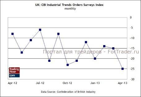 Руководители в производственном секторе не способствуют развитию оптимизма на рынке. Если британская экономика действительно восстанавливается, как свидетельствуют некоторые статистические отчеты, то по уровню настроений в промышленном секторе этого не скажешь. В апреле этот индекс настроений резко ухудшился, вызвав опасения, что пока питать надежды на экономический рост в Великобритании все еще преждевременно. Главным аргументом здесь является то, что продолжительное восстановление экономики должно включать в себя восстановление производственного сектора.