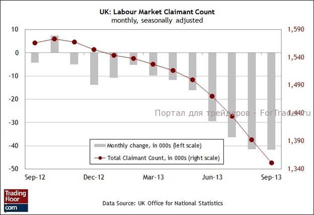Если сегодня мы узнаем об ухудшении ситуации на рынке труда, то вчерашняя новость об инфляции будет казаться еще более мрачной. Однако экономисты говорят, что вероятность такого развития событий очень низкая. Консенсус-прогноз предусматривает снижение уровня безработицы до 7,6%, что станет самым низким значением с 2009 года. Аналитики также полагают, что важный индикатор количества заявок на пособие по безработице продемонстрирует снижение в октябре на 35 000. В настоящий момент экономика Великобритании развивается неплохими темпами, и никто не ожидает неприятных сюрпризов от сегодняшнего отчета.