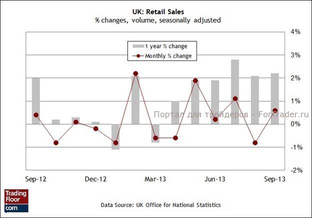 Аналитики полагают, что показатель месячных изменений понизится, в результате чего продажи в розничном секторе останутся на неизменном уровне по сравнению с сентябрем. При этом годовой показатель роста должен улучшиться до 3,2%, что образует существенный прирост по сравнению с предыдущим значением 2,2%. Тем не менее, розничные продажи до сих пор оставались относительно слабым звеном в процессе восстановления экономики Великобритании, и несложно понять почему. Несмотря на незначительное уменьшение инфляции в прошлом месяце, потребительские цены в настоящий момент растут намного быстрее зарплат. Среднегодовой рост доходов наемных рабочих за три месяца до сентября составил всего 0,7%, при этом годовой показатель роста индекса потребительских цен в последнее время превышает 2%. В этой информации нет ничего нового: рост зарплат отстает по темпам от инфляции на протяжении нескольких лет. Разница лишь в том, что в последние месяцы (до сентября) этот разрыв увеличился (данные о росте зарплат публикуются на месяц позже CPI).