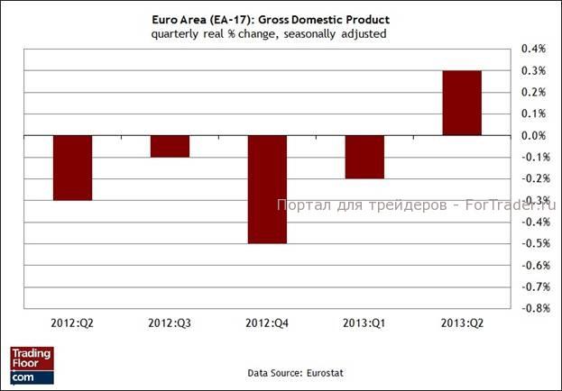 На примере результата предварительной оценки роста ВВП в третьем квартале участники рынка попытаются понять, сохраняется ли еще потенциал хрупкого экономического восстановления в Еврозоне. После опубликованной на прошлой неделе новости о том, что годовой показатель инфляции неожиданно понизился до 0,7%, сомнений стало больше. Данные об инфляции подтолкнули Европейский центральный банк к неожиданному снижению базовой процентной ставки на 25 базисных пунктов. Да, аналитики говорят, что в сегодняшнем отчете мы увидим подтверждение подъема экономической активности в третьем квартале, но темпы будут совсем незначительными.
