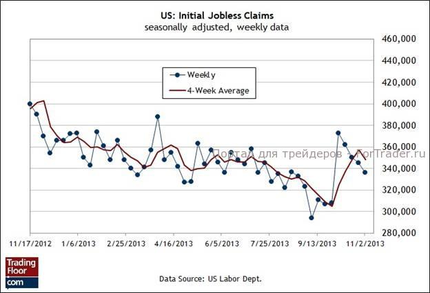 Ожидается, что сегодняшний отчет принесет с собой очередную порцию умеренно благоприятных новостей, указывающих на то, что экономике США удастся сохранить тенденцию к росту в ближайшем будущем. Кроме того, если ожидания рынка оправдаются и если количество заявок на пособие по безработице вновь сократится, то это будет первым официальным доказательством того, что в ноябре улучшение продолжилось после неожиданно высокого показателя занятости в октябре, который был опубликован на прошлой неделе.
