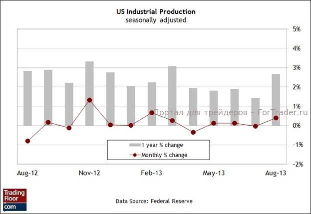 Согласно прогнозам, сегодняшний отчет о промышленном производстве за сентябрь продемонстрирует рост на 0,4% по сравнению с предыдущим месяцем. Если прогноз сбудется, то это будет означать, что темпы роста по сравнению с августом не изменились. Пара положительных значений на уровне 0,4%, безусловно, послужит убедительным сигналом для участников рынка, учитывая, что это будет лучший результат последовательных ежемесячных значений с начала 2012 года. В то же время слабый отчет о занятости за сентябрь поднимает вопросы, связанные с экономическим потенциалом в прошлом месяце и далее. Возможно, игроки слишком многого ждут от сегодняшнего отчета, потому что на прошлой неделе стало известно, что индекс менеджеров по закупкам в производственном секторе США, по предварительным оценкам за октябрь, опустился до минимального уровня за один год. «По результатам опроса оценка производственной активности впервые понизилась с момента пика финансового кризиса, который пришелся на сентябрь 2009 года», — заявил главный экономист Markit. Мои эконометрические модели также указывают на то, что прирост промышленного производства будет меньше, чем свидетельствует консенсус-прогноз.