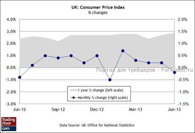 Если макроэкономическая картина действительно улучшается, то у участников рынка неизбежно возникает вопрос о том, когда и каким образом Банк Англии начнет решать проблему инфляции, которая уже на протяжении нескольких лет держится выше двухпроцентной отметки, установленной ЦБ. Пока в стране была рецессия, это не представляло проблему, но теперь в денежно-кредитной политике Великобритании наступает новый этап. В июне годовой темп роста инфляции потребительских цен достиг максимальной отметки за период более одного года на уровне 2,9%. В целом, можно смело утверждать, что в сегодняшнем отчете Банка Англии никаких сюрпризов в плане смягчения не ожидается. В последнее время в вопросе дополнительных стимулирующих мер поддержка со стороны центрального банка была минимальной, а, учитывая опубликованные на этой неделе данные, вероятность смягчения позиции властей в ближайшем будущем стала еще меньше.
