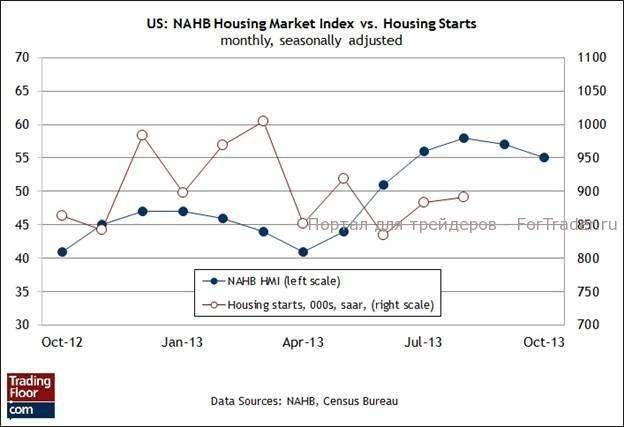 В последнее время темпы восстановления на рынке жилья замедлились, поэтому сегодняшние результаты опроса застройщиков очень важны для формирования ожиданий в отношении официальной статистики, публикация которой состоится в ближайшие дни. Особую важность этот отчет от Национальной ассоциации жилищно-строительных компаний (National Association of Home Builders, NAHB) приобретает потому, что мы до сих пор не знаем данных о новом жилищном строительстве в сентябре, выход которых был отложен в связи с закрытием правительства в прошлом месяце.