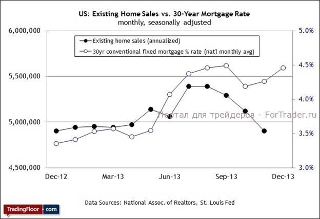 Ожидается, что в сегодняшнем выпуске результат будет относительно нейтральным. Консенсус-прогноз предусматривает, что в декабре общее количество проданных домов не изменится по сравнению с предыдущим месяцем и составит 4,9 миллиона единиц (годовой показатель с учетом сезонных факторов). Результат не очень впечатляющий, если вы ждете, что рынок «быков» будет стремительно разрастаться, но он означает, что рынок продолжает восстанавливаться, пусть и более медленными темпами, чем мы могли наблюдать на протяжении последних двух лет.