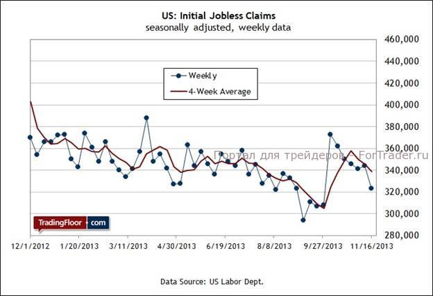 В последнее время количество новых заявок на пособие по безработице снижалось, а на последней отчетной неделе установило минимальное значение с конца сентября. Экономисты полагают, в сегодняшнем отчете, который выйдет на один день раньше в связи с нерабочим днем в США в четверг по случаю празднования Дня благодарения, цепочка более низких значений прервется. Но даже если прогноз сбудется, и количество заявок на прошлой неделе вырастет до 330 000 по сравнению со значением 323 000 неделей ранее, результат все равно довольно низкий и указывает на то, что тенденция занятости вне сельскохозяйственного сектора продолжит восстанавливаться.