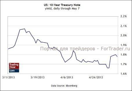 Остается ли высоким спрос на активы-убежища, или в свете вчерашнего впечатляющего отчета он понизится? Доходность по 5-летним облигациям в последние дни росла, указывая на то, что инвесторы снова готовы покупать рисковые активы, пусть и в небольших объемах. Интересно отметить тот факт, что доходность по 5-летним облигациям на протяжении более одного месяца держалась в диапазоне 0,3-0,4%. Прорыв отметки 0,4% станет сигналом о том, что интерес к риску набирает обороты.