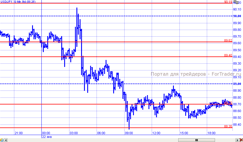 Пара доллар/иена после заседания Банка Японии все же двинулась вниз после того, как в качестве первой реакции подскочила к отметке 90,12. В течение дня цены преодолели несколько уровней поддержки, в том числе и 89,00, отметив минимум на уровне 88,35, от которого к завершению торговых суток все же вернулись в район уровня 88,70.