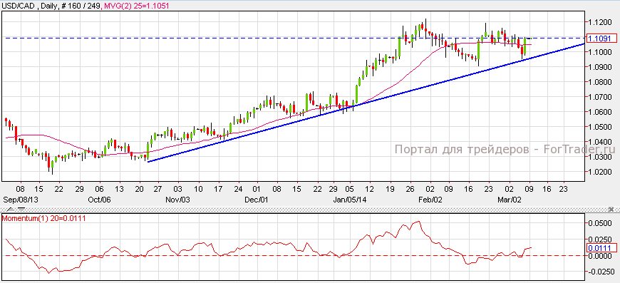 Доллар США укрепился против канадского доллара после выхода Уровня занятости, который оказался хуже прогнозов и составил -7.0 тыс против 16.9 тыс. Уровень безработицы не изменился составив 7.0%. Согласно техническому анализу дневного графика, пара USD/CAD торгуется в восходящем канале. Пока пара держится выше уровня поддержки 0.0950, импульс пары остается восходящим. Индикатор Моментум а так же индикатор Скользящая средняя поддерживают восходящий тренд.
