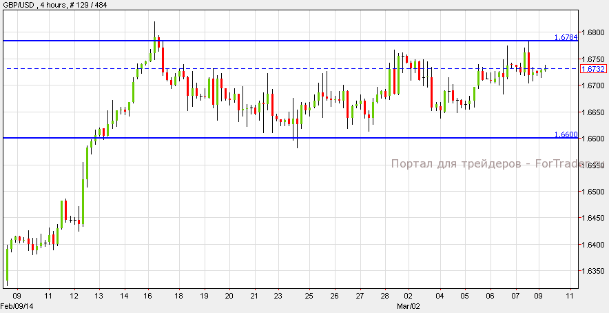 Фунт снизился против доллара на фоне предположений инвесторов, что Банк Англии сохранит монетарную политику в целях достижения уровня инфляции в 2% в 2014 году. Согласно техническому анализу 4-часового графика, GBP/USD торгуется между уровнем поддержки 1.6600 и уровнем сопротивления 1.6784 Возможно дальнейшее падение пары к уровню поддержки.