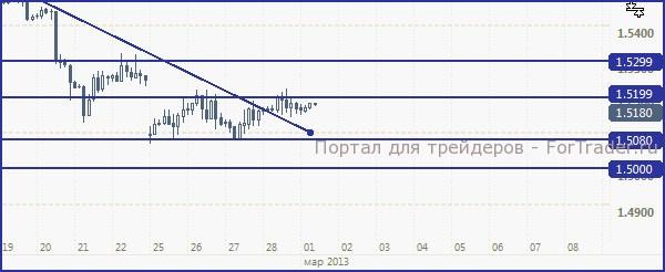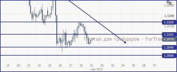 EUR/USD, с большей долей вероятности, может восстановиться к отметкам выше 1.31 сегодня (при невозможности нахождения альтернативы автоматическому сокращению бюджетных затрат), дальнейшее снижение к 1.30 и ниже маловероятно.