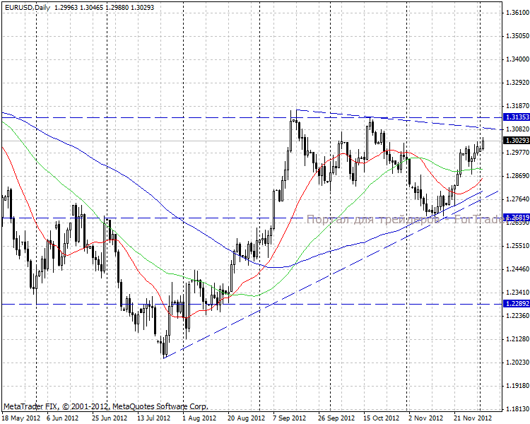 Во второй половине ноября текущего года произошел рост цен на единую европейскую валюту. Инвесторы реагировали на новостной фон с Соединённых Штатов Америки, где после победы на выборах Обамы были существенные опасения на экономическое развитие страны в 2013 году, что привело к ослаблению доллара.