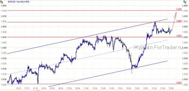 Ожидание продолжения восходящего движения евро и пробоя верхней границы канала — до отметки 1,4755.