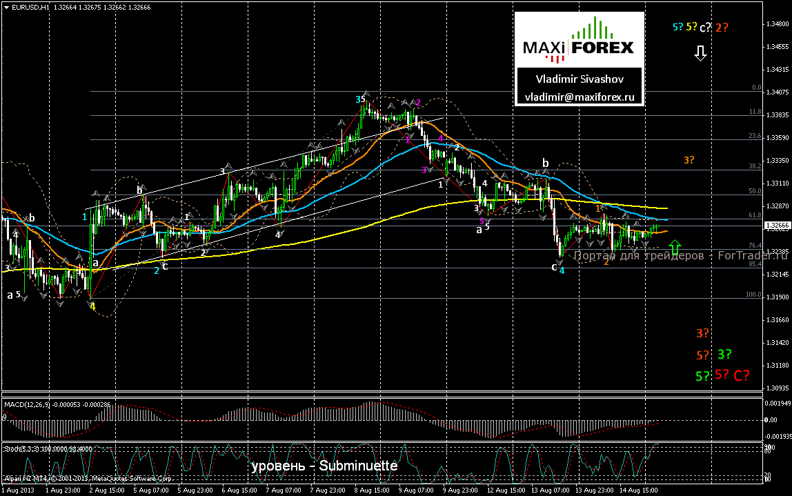 Среда для пары евро\доллар оказалась неоднозначным и довольно волатильным днём. Несмотря на то, что ВВП Еврозоны, во 2-м квартале текущего года, вышел из отрицательной зоны и, наконец-то, составил прирост — 0,3%, положение единой валюты не улучшилось. Курс пары подрос, всего лишь, на 20 пунктов, а затем, начал снижаться. Участники рынка проигнорировали тот факт, что рост ВВП, в квартальном исчислении, превысил прогнозы и, к тому же, оказался самым быстрым — с 1-го квартала 2011 года. Причиной такого невнимания стало то, что инвесторы, сейчас, более сосредоточены на вероятности завершения программы финансового стимулирования в США, и потому игнорируют фундаментальные факторы. В этом плане, поддержку американскому доллару оказало выступление члена ФРС Денниса Локхарта, который заявил, что корректировка Объёмов покупок облигаций может состояться в сентябре, октябре или декабре месяце. Участники рынка, при этом, расценили расплывчатое высказывание Локхарта, как обещание начать сворачивать финансовые вливания – уже в этом году. Получив, таким образом, ориентир, доллар США начал своё наступление на единую валюту и зафиксировал снижение пары на уровне 1.3239. В целом же, валюта так и не вышла из бокового диапазона и завершила торги на ценовом уровне – 1.3255.