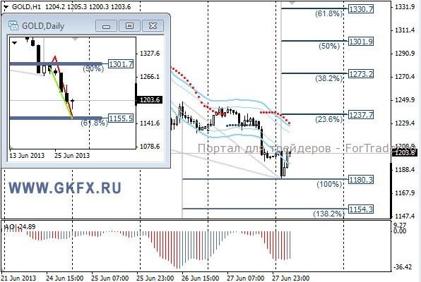 Цены на золото похоже решили исполнить мой пессимистичный сценарий и уйти в район 1160,0. Сегодня утром цена отметилась уже на 1180,0, осталось немного снизиться до целевой отметки. Традиционно делаю два варианта движения цены на неделю, основной красный и альтернативный зеленый. Значимые уровни на сегодня отмечены на часовом графике. Индикатор АО находится в отрицательной зоне и растет, указывая на коррекцию перед возможным продолжением снижения. Индикатор тренда указывает на снижение. Вне рынка.