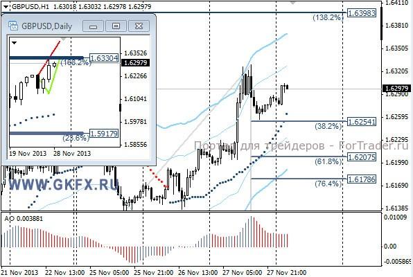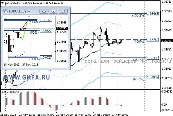 Пара EURUSD повторила вчерашний день и выросла в соответствии с ожиданиями, выполнив первую цель по рекомендации и впоследствии закрыв сделку по безубытку. Пара установила, скорее всего, недельный максимум на уровне 1,3612 и движение выше, маловероятно. Плюс ко всему доллар получил хорошую поддержку от статистики по США. С сегодняшнего дня в США наступают длинные выходные, и рынки в США будут закрыты. В пятницу рынок будет открыт до обеда, что тоже нельзя назвать рабочим днем. Поэтому ликвидность на рынке будет понижена и сильные движения маловероятны. На эту неделю традиционно рассматриваю два варианта возможного движения цены, основной красный и альтернативный зеленый. Значимые уровни на сегодня отмечены на часовом графике. Индикатор АО находится в отрицательной зоне и снижается, указывая на желание двигаться вниз в данное время. Индикатор тренда указывает на рост. Вне рынка.