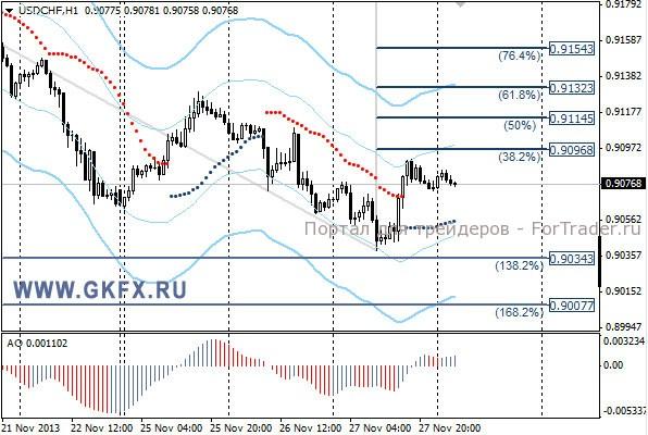 Пара GBPUSD двигалась активней евро благодаря статистике по Великобритании. В итоге по рекомендации обе цели были достигнуты. До конца недели думаю, рынок будет менее активный, и рекомендаций давать не буду. Если и будет какая-то активность, то только на европейских торгах. Есть шанс отметить новые максимумы на этой неделе. На этой неделе по традиции рассматриваю два варианта возможного движения цены, основной красный и альтернативный зеленый. Значимые уровни на сегодня отмечены на часовом графике. Индикатор АО находится в положительной зоне и снижается, указывая на коррекцию перед возможным продолжением роста. Индикатор тренда указывает на рост. Вне рынка.