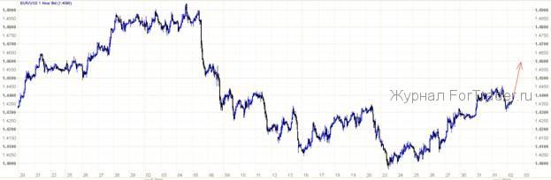 С технической стороны, ожидание продолжения восходящего движения евро с тестированием уровня 1,4600