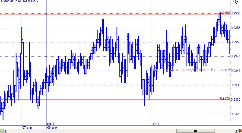 Пара доллар/франк в понедельник продемонстрировала, пожалуй, самую сдержанную динамику. Котировки в течение торговых суток удерживались в пределах узкого диапазона, ограниченного уровнями 0,9330 – 0,9360. День пара завершила в районе его верхней границы.