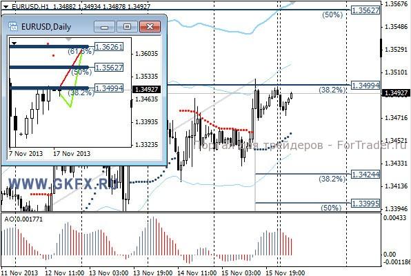 Пара EURUSD торговалась с повышением на американских торгах после слабой статистики по США. Статистических данных было немного на ушедшей неделе, поэтому реакция на них была значительная. Пара превышала отметку 1,3500 на какое-то время, это указывает на очень возможное продолжение роста на этой неделе минимум к 1,3560. Прошедшая неделя частично отработалась по зеленому сценарию. Все карты смешала заместитель председателя ФРС США Джанет Йеллен. По рекомендации сделка не исполнилась. На эту неделю традиционно рассматриваю два варианта возможного движения цены, основной красный и альтернативный зеленый. Значимые уровни на сегодня отмечены на часовом графике. Индикатор АО находится в положительной зоне и снижается, указывая на коррекцию перед возможным продолжением роста. Индикатор тренда указывает на рост. Преодоление 1,3510 даст возможность для покупок с целями 1,3530 и 1,3560.