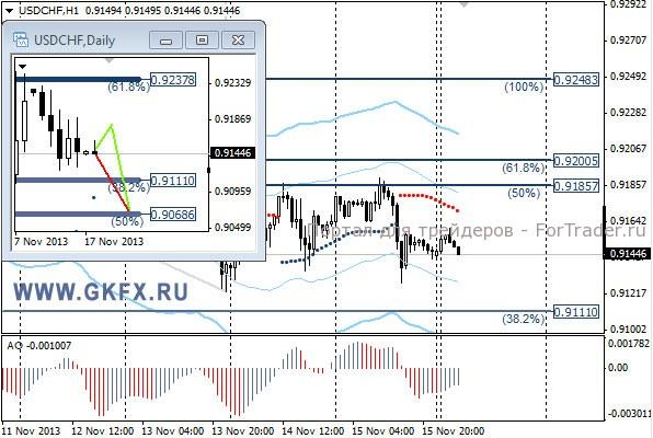 Пара USDCHF принизила минимум четверга, отменив тем самым сценарий роста. Фунт и евро готовятся к росту, поэтому логично эту пару рассматривать для снижения. Прошедшая неделя частично отработалась по зеленому сценарию. На эту неделю традиционно рассматриваю два варианта возможного движения цены, основной красный и альтернативный зеленый. Значимые уровни на сегодня отмечены на часовом графике. Индикатор АО находится в отрицательной зоне и растет, указывая на коррекцию перед возможным продолжением снижения. Индикатор тренда указывает на снижение. Преодоление 0,9120 даст возможность для продаж с целями 0,9110 и 0,9070.