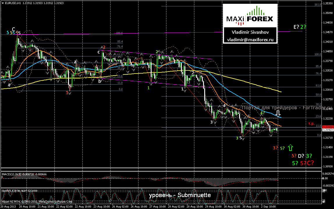 В нашем прогнозе на вторник, предполагаем возобновление коррекционного подъёма пары, ориентировочно, в ценовую зону 1.3260 ÷ 1.3320. Далее, ожидаем — возобновление снижения курса единой европейской валюты к целевым уровням: 1.3174; 1.3133 и, возможно, к 1.31.