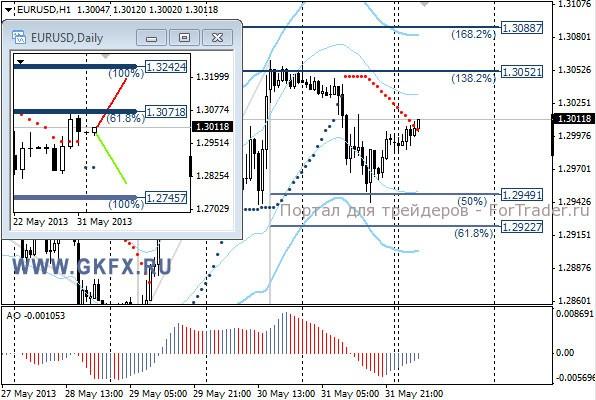 Пара EURUSD прошедшую неделю закончила повышением, не оправдав ожиданий. На этой неделе, если пара преодолеет сопротивление в районе 1,3070, то вполне вероятен поход к 1,3190-1,3240. Напротив если пара преодолеет 1,2950, то возможно движение к 1,2800. Данных ожидается в этот раз много, но основные будут заседания ЕЦБ, Банка Англии и данные по рынку труда в США. Сегодня ожидается производственный PMI по Еврозоне. По пятничной рекомендации сработал безубыток. На эту неделю традиционно рассматриваю два варианта возможного движения цены, основной красный и альтернативный зеленый. Значимые уровни на сегодня отмечены на часовом графике. Индикатор АО находится в отрицательной зоне и растет, указывая на коррекцию перед возможным дальнейшим снижением. Индикатор тренда указывает на снижение, но вскоре может сменить направление. Buy от 1.2980 со стопом 1,2965. Цель 1,3020.