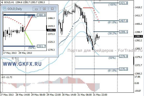 Цены на золото в пятницу вернулись ниже 1400,0 на этот раз после позитивных данных по США. По США по-прежнему выходят смешанные данные, что сказывается на рынке разнонаправленными движениями. Похоже, рынок будет ориентироваться на данные по рынку труда США, чтобы найти направление, а это минимум до среды, когда выйдут данные от ADP, будет некая неопределенность. Традиционно делаю два варианта движения цены на неделю, основной красный и альтернативный зеленый. Значимые уровни на сегодня отмечены на часовом графике. Индикатор АО находится в отрицательной зоне и растет, указывая на коррекцию перед возможным дальнейшим снижением. Индикатор тренда указывает на снижение. Наблюдаем за намерением рынка.