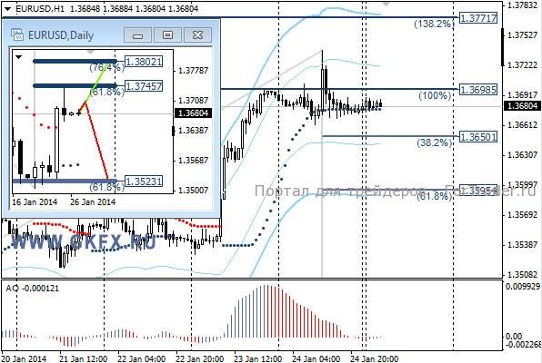 Пара GBPUSD резко снизилась во время выступления главы Банка Англии Карни. Он сказал, что новые ориентиры будут намечены только в феврале, а судя по реакции рынка эти новости ожидались немедленно. На дневном графике отработался частично зеленый вариант. На этой неделе по традиции рассматриваю два варианта возможного движения цены, основной красный и альтернативный зеленый. Значимые уровни на сегодня отмечены на часовом графике. Индикатор АО находится в отрицательной зоне и растет, указывая на коррекцию перед возможным продолжением снижения. Индикатор тренда указывает на снижение. Сегодня наблюдаем за предпочтениями рынка.