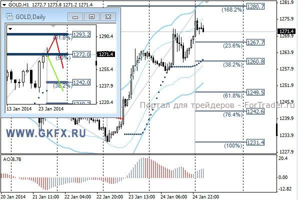 Цены на золото в пятницу продолжили рост, но скромнее чем накануне. Тем не менее, можно предположить, что рост происходит на ожидании заминки в дальнейшем сокращении программы стимулирования экономики США. Об этом станет известно в среду по результатам заседания ФРС США. До среды цены могут застопорить рост. На дневном графике не отработался не один из вариантов. Традиционно делаю два варианта движения цены на неделю, основной красный и альтернативный зеленый. Значимые уровни на сегодня отмечены на часовом графике. Индикатор АО находится в положительной зоне и растет, указывая на желание инструмента, расти в данное время. Индикатор тренда указывает на рост. Сегодня наблюдаем за предпочтениями рынка.
