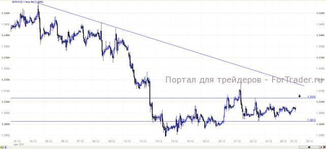 Евро находиться в районе минимальных значений за этот год, куда его загнали инвесторы, постепенно избавляясь от ненадежных активов. Таким образом, пациент-евро пребывает в состоянии комы, о росте уже и не вспоминает, но признаки жизни еще подает, благодаря аппарату искусственного поддержания жизни, успешно подключенному Европейским Центральным банком, который весьма щедро выдал многомиллионные кредиты нуждающимся. Кстати, именно заботами ведомства Супер Марио Драги новогодние дни проходят именной в таком ключе: совсем рухнуть евро не дали, но оставили надежду на девальвацию европейской единицы. Так или иначе, пациента от аппарата отключат, а это будет действительно настоящим испытанием на жизнеспособность и не факт, что евро останется платежным средством во всех странах ныне пребывающих в Еврозоне.