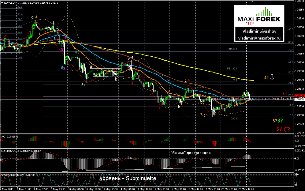 В нашем прогнозе на вторник, предполагаем – первоначальную боковую торговлю, вблизи уровня дневного разворота — 1.2867, а затем – новый подъём курса единой европейской валюты, к целевым уровням: 1.2903; 1.2944 и 1.2970. Здесь, в ценовой зоне 1.2970 ÷ 1.30 ожидаем разворот и снижение пары в очередном цикле её нисходящего движения. Целью снижения станет предыдущий локальный минимум 1.2796, а после его пробоя – ключевая поддержка фигуры «Голова и Плечи» — 1.2761. Если паре удастся преодолеть этот уровень и закрепиться под ним, снижение продолжится в направлении уровня 1.27 и ниже.