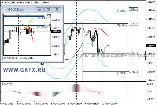 Цены на золото опять отошли от максимумов недели и это не удивительно, так как доллар значительно подрос. Сегодня возможно снижение продолжится, поэтому пробуем продавать. Традиционно делаю два варианта движения цены на неделю, основной красный и альтернативный зеленый. Значимые уровни на сегодня отмечены на часовом графике. Индикатор АО находится в отрицательной зоне и растет, указывая на коррекцию перед возможным дальнейшим снижением. Индикатор тренда указывает на снижение. Sell от 1463.0 или выше со стопом 1467,0. Цель 1453,0.