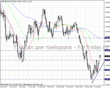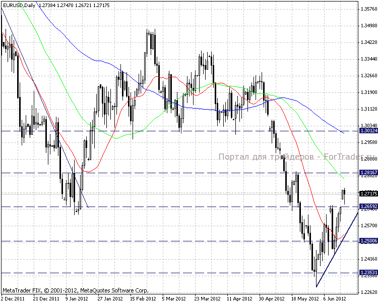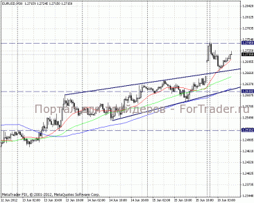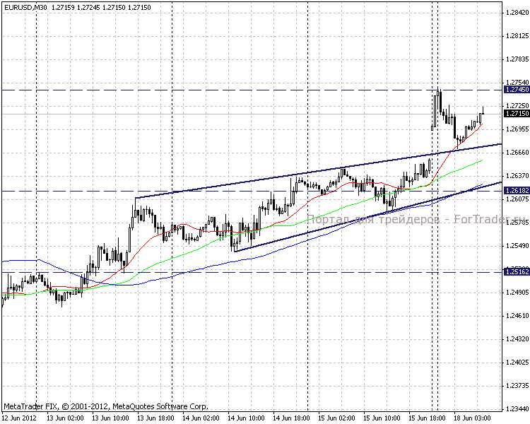 Анализируя внутридневные графики, делаем вывод об ускорении покупательского настроения. Очередной понедельник открылся с гепом вверх, на сегодняшний день, закрытие которого маловероятно. Сильный уровень поддержки находится на отметке 1,2670, сопротивление было встречено на уровне 1,2745.
