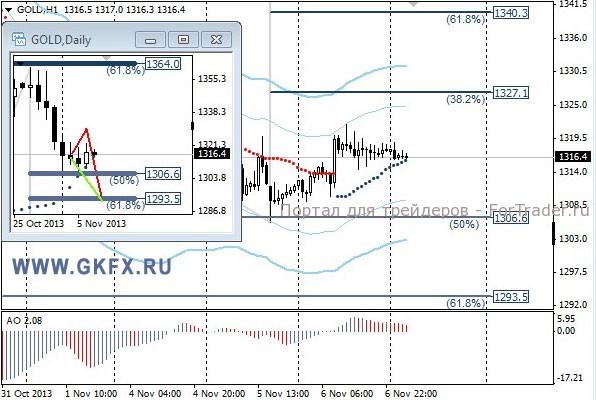 Цены на золото направились в другую сторону от ожидаемого прорыва. Золото продолжает торговаться в диапазоне уже четвертый день. По-видимому, рынок драгметаллов будет ожидать данных по новым рабочим местам в США, которые ожидаются в пятницу. До этого времени наверняка будет торговля в диапазоне. Традиционно делаю два варианта движения цены на неделю, основной красный и альтернативный зеленый. Значимые уровни на сегодня отмечены на часовом графике. Индикатор АО находится в положительной зоне и снижается, указывая на коррекцию перед возможным продолжением роста. Индикатор тренда указывает на рост. Рекомендацию оставляю прежней, она все еще актуальна. Прорыв уровня 1306,0 даст возможность для продаж с целями 1300,0, 1293,0 и 1277,0.