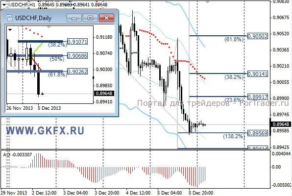 Пара USDCHF опять двигалась вниз через глубокий откат, и рекомендация была бы убыточной. Сегодня основное событие дня рынок труда в США, под эти данные рекомендаций не даю. На эту неделю традиционно рассматриваю два варианта возможного движения цены, основной красный и альтернативный зеленый. Значимые уровни на сегодня отмечены на часовом графике. Индикатор АО находится в отрицательной зоне и растет, указывая на коррекцию перед возможным продолжением снижения. Индикатор тренда указывает на снижение. Вне рынка.