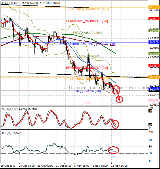 Индикатор Stoch.  указывает на перепроданность пары. RSI указывает на ослабление ее снижения.