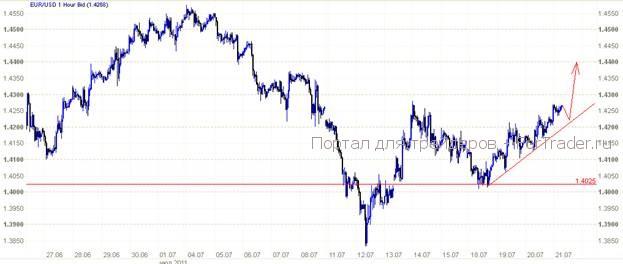 В данный момент куда большее влияние на евровалюту оказывает ситуация в США, в связи с не совсем понятным механизмом решения вопроса государственного долга. Опасение со стороны инвесторов в отношении дефолта США оказывают поддержку единой валюте.