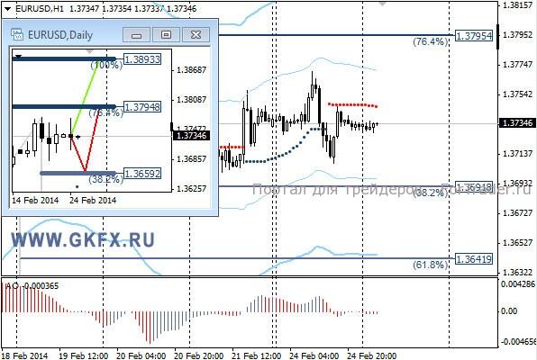 Пара EURUSD в понедельник закончила торги на тех же уровнях, что и начала проводив в течение дня разнонаправленные колебания. Данные Ifo оказались неожиданно сильными и дали толчок евро подняться в цене, но ненадолго. Пока по паре продолжает летать неопределенность в дальнейшей динамике. На эту неделю традиционно рассматриваю два варианта возможного движения цены, основной красный и альтернативный зеленый. Значимые уровни на сегодня отмечены на часовом графике. Индикатор АО находится у нуля, указывая на неопределенность. Индикатор тренда указывает на снижение. Вне рынка.