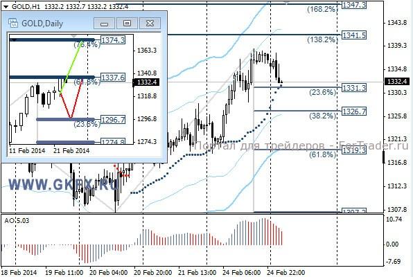 Цены на золото устремились вверх, говоря о том, что потенциал к росту еще не иссяк. Тогда есть смысл провести покупки с расчетом на продолжение снижения. Традиционно делаю два варианта движения цены на неделю, основной красный и альтернативный зеленый. Значимые уровни на сегодня отмечены на часовом графике. Индикатор АО находится в положительной зоне и снижается, указывая на коррекцию перед возможным продолжением роста. Индикатор тренда указывает на рост. Покупки от 1327,0 с целями 1335,0, 1341,0 и 1347,0.