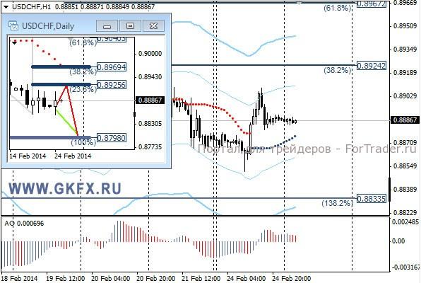Пара USDCHF обновила минимум прошлой недели на несколько пунктов и ушла наверх. Опять маневр по зацеплению и уводу селл стопов в противоположном направлении. Сегодня возможен рост в район 0,8925. На эту неделю традиционно рассматриваю два варианта возможного движения цены, основной красный и альтернативный зеленый. Значимые уровни на сегодня отмечены на часовом графике. Индикатор АО находится в отрицательной зоне и растет, указывая на коррекцию перед возможным продолжением снижения. Индикатор тренда указывает на снижение. Вне рынка.