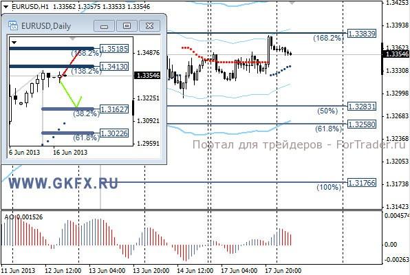 Пара EURUSD вчера торговалась в диапазоне в соответствии с ожиданиями. Торги сместились к верхней его границе и это также можно считать признаком для продолжения роста. Активные действия не предпринимаются участниками рынка из-за предстоящего заседания ФРС и сегодняшних данных ZEW, после публикации которых, рынок может оживиться. На эту неделю традиционно рассматриваю два варианта возможного движения цены, основной красный и альтернативный зеленый. Значимые уровни на сегодня отмечены на часовом графике. Индикатор АО находится в положительной зоне и снижается, указывая на коррекцию перед возможным продолжением роста. Индикатор тренда указывает на рост. Возможен выход из диапазона 1,3290-1,3360 вверх, после сильных данных ZEW.