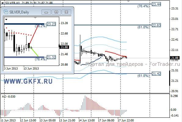 Цены на золото торговались в узких диапазонах в соответствии с ожиданиями. Сегодня выходит статистика по еврозоне и США, которая может повлиять на поведение доллара, а соответственно и на драгметаллы. Сегодня есть вероятность преодоления верхней границы диапазона 1366,-1394,0, но в преддверии заседания ФРС США это вряд ли случится. Традиционно делаю два варианта движения цены на неделю, основной красный и альтернативный зеленый. Значимые уровни на сегодня отмечены на часовом графике. Индикатор АО находится в отрицательной зоне и растет, указывая на коррекцию перед возможным продолжением снижения. Индикатор тренда указывает на снижение. Рекомендую торговлю в указанном диапазоне.