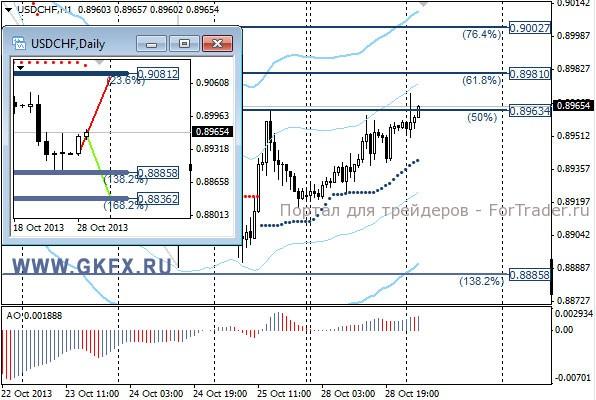 Пара USDCHF продолжает корректировать снижение и подошла к уровню 0,8965, прохождение которого позволит войти в покупки. На эту неделю традиционно рассматриваю два варианта возможного движения цены, основной красный и альтернативный зеленый. Значимые уровни на сегодня отмечены на часовом графике. Индикатор АО находится в положительной зоне и растет, указывая на желание пары двигаться вверх. Индикатор тренда указывает на рост. Преодоление 0,8965 позволит войти в покупки с целями 0,8980 и 0,9000.