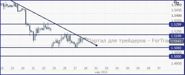 Бернанке продолжил давать комментарии, слышались повторы основных вчерашних тезисов, он продолжил опираться на фискальные проблемы страны и призывать к их более быстрому решению (путём указания на важность данного вопроса, но видит постепенное решение всех недостатков фискальной политики). Интересным стало высказывание о том, что политика QE может быть пересмотрена и при слишком долгом “застое” на рынке труда (в то же время председатель ФРС видит улучшение на рынке труда сейчас). Бен также выступил за повышение процентных ставок при улучшении ситуации в экономике (и это верно, так как при “нормальном” поведении экономических показателей, низкие процентные ставки лишь всё испортят). В краткосрочной перспективе Бернанке не видит потери долларом статуса резервной валюты. В конце своей речи Бен дал прогноз, из которого следует, что безработица дойдет до 6% лишь в 2016 году, также он с заметной долей негатива высказался о проблемах Японии (это может поддержать USD/JPY и помочь паре продолжить восстанавливаться), в то же время текущий вариант мер “жесткой экономии” в Европе он не может назвать успешным (так как Германия была самым ярким примером использования данной статистики, но и там наблюдался спад).
