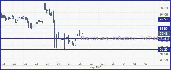 Пара доллар/йена, вероятно, продолжит оставаться над 92 (используя данную отметку, как нижнюю границу диапазона до новых комментариев БЯ), в то же пытаясь дойти до 93.