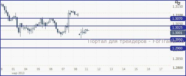 Баланс внешней торговли Китая, хоть и продолжил снижаться, всё ещё остаётся на положительной территории, показатель в феврале зафиксировался на отметке в 15.3 млрд. Пожалуй, нельзя не отметить тот факт, что экспорт в стране вырос на 21.8% (в годовом выражении, данное значение слабее, чем было месяцем ранее), а импорт снизился на 15.2% (опять же, в годовом выражении, важно отметить, что месяцем ранее данный показатель держался на отметке 28.8% и снижение экспорта не стало столь значительным именно из-за снижения данного показателя). Министр торговли Китая затем (после статистических данных) сообщил рынку о своих позитивных взглядах на 2013 год в плане внешней торговли, по его словам, перспективы на 2013 год лучше, чем на предыдущий, в целом, он видит рост торговли, примерно, на уровне 8%.
